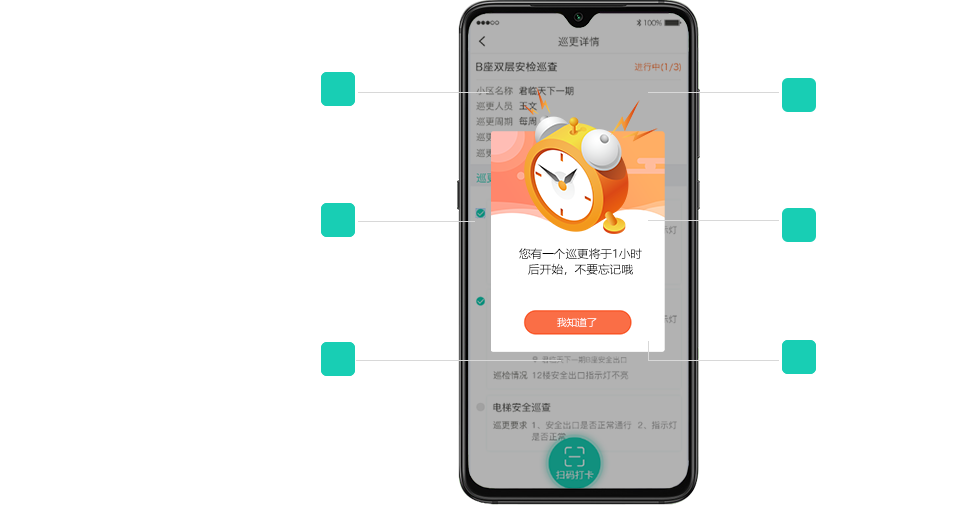 有助于物业的巡更管理制度有效落地执行,计划一次生成,轻松管理保安团队,让您的巡查人员主动去巡更,显著提高巡更的质量和效率