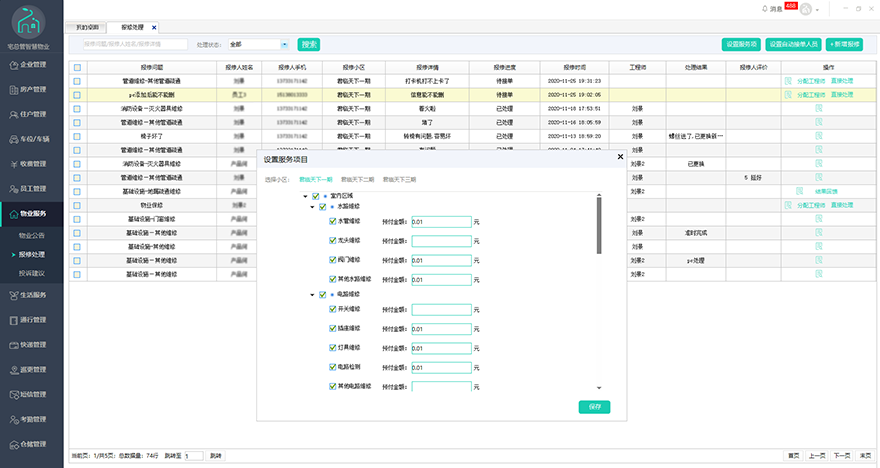 不同的维修项目物业可单独设置维修费用,维修完毕若产生额外费用,宅总管物业版APP支持在线收款,业主扫一扫即可付款完成,解决私下乱收费的问题,提高业主信任度,促进物业对员工规范化管理