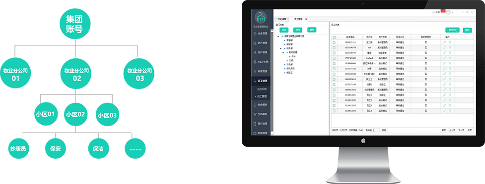 不论您有多少个社区或有多少家物业分公司,只需一个账号即可实现全局管理,集团总账号可以设置各分公司账号,