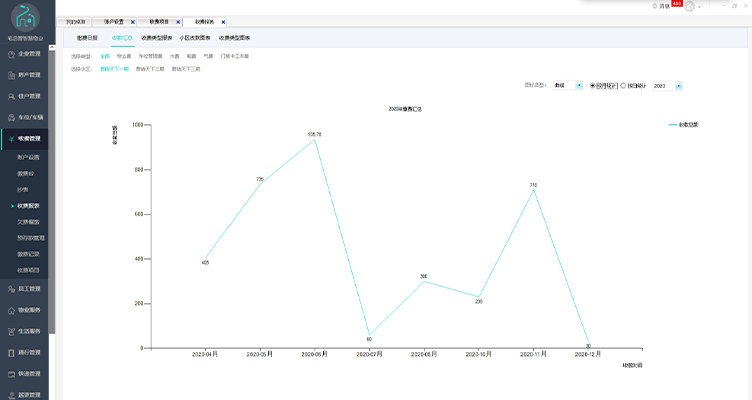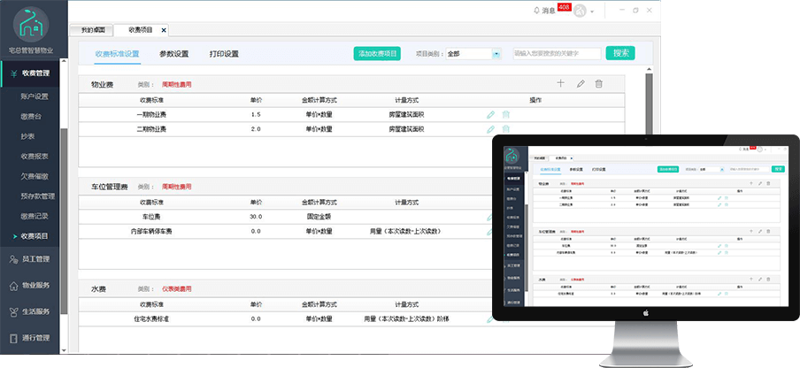集团账号、物业分公司账号、社区管理员账号均可自定义设置收费标准,业主按照系统