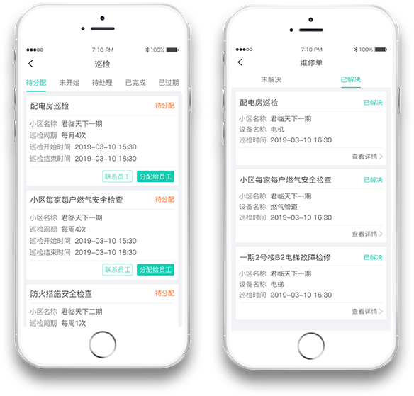 计划,对于巡检、维保过程中出现的异常情况,物业在线即可把异常订单分配给