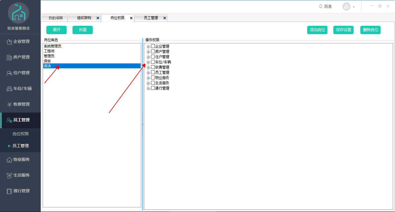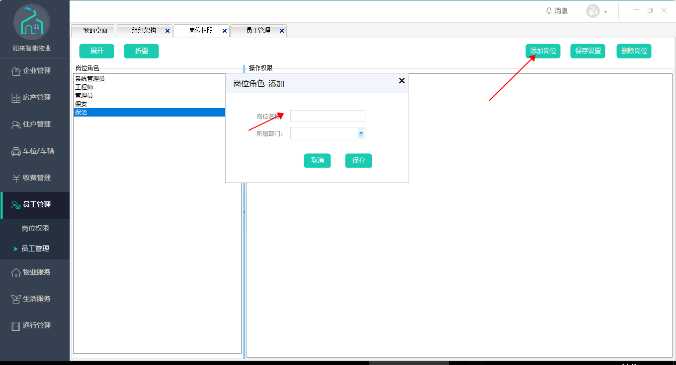 宅总管物业中心—》员工管理—》岗位权限
